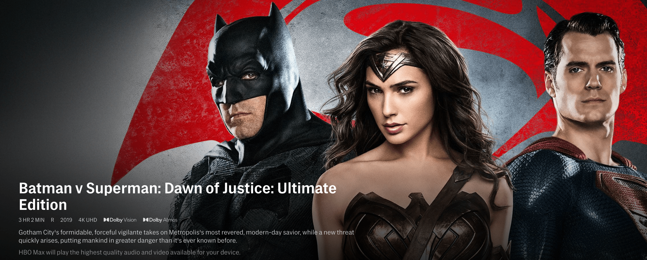 Dawn of justice ultimate edition available to own on digital and stream on hb... Dawn of justice ultimate edition available to own on digital and stream on hb. Dawn of justice earns a redo in this remastered extended cut of the movie, which includes the imax footage in its original aspect ratio and a new color timing.